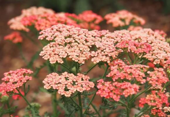 Achillea millefolium 'Apricot Delight' produces blooms in a range of colors from pink to pale apricot to almost red. The fabulous hues of this Yarrow are itensified by full sun. Full, compact habit. Uniform flowering.