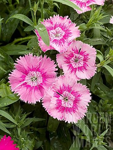 Dianthus hybrida 'Elation Pink Bicolor' is an early-flowering, low-growing plant producing brilliant, fringed flowers. Dianthus is great for beds and borders. Has a tendency to reseed.