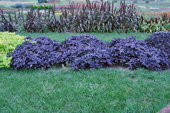 Ipomoea batatas 'Sidekick Black' has a vigorous, compact trailing habit & purple-black leaves. Sweet Potato Vine is phenomenal in the landscape or as a "spiller" in your favorite basket or large container. Very vigorous in sunny locations, slower growing in shade. A Kaw Valley favorite!