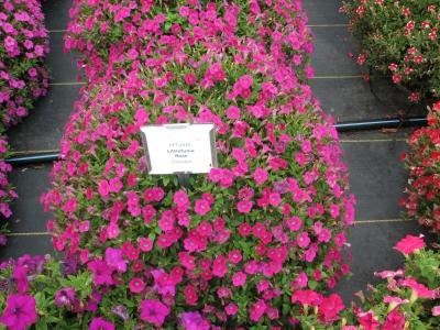 What could be better than "Million Bells" (calibrachoa)? Petunia hybrida 'Littletunia Rose'! Littletunias grow fast like a spreading petunia, but have the cute little petunia blooms like a calibrachoa. Irrisistable not only in containers, but unlike many calibrachoa, Littletunias perform great in flower beds, too! Fertilize often. A Kaw Valley favorite!