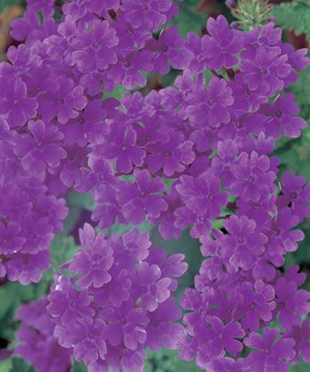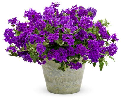 Verbena hybrid 'Superbena Dark Blue' provides clusters of flowers all season. Low maintenance, vigorous plants. Great annual ground cover. Self-cleaning, no deadheading necessary. Verbena is outstanding for lanscape beds and containers.