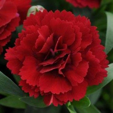 The new 'Sunflor' series of dianthus have gorgeous double blooms, a scented fragrance and repeat bloom from spring to fall. 'Sunflor Desire' has lovely deep red flowers. These hardy carnations have neat blue-green foliage forming thick, smooth, uniform mounds.