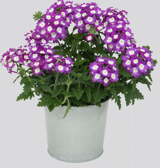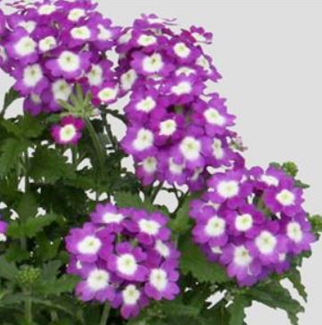 Verbena hybrid 'Blues Violet + Eye' is unique with each violet floret having a huge white eye, the effect is stunning! Free-flowering with a large spreading, cascading habit. Fantastic in beds or containers, this Spreading Verbena is definitely a pleasure to behold.