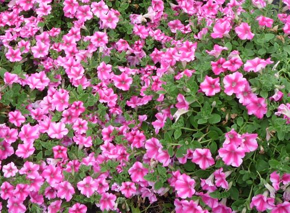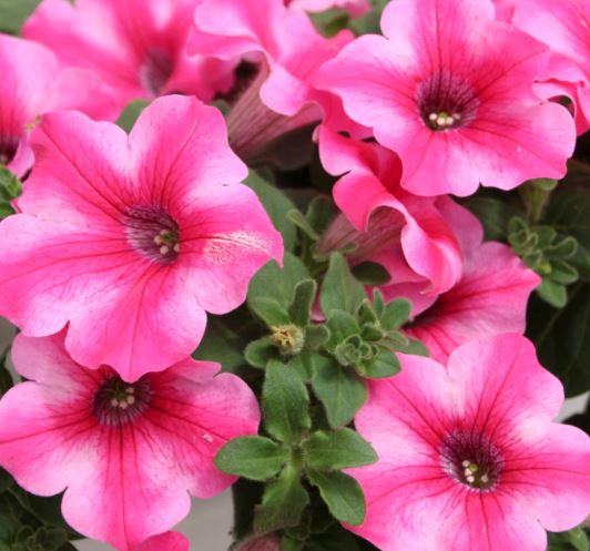 Petunia hybrid 'Sanguna Star Rose' produces huge pink and rose bicolored blooms all season long. You will be amazed by its huge, spreading habit! It's perfect filler for landscape or spiller for large containers. Blooms all season; fertilize often for best perfomance. Spreading Petunias are self-cleaning, no deadheading necessary.